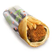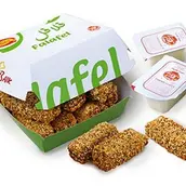 10 delicious and crunchy Spicy Falafel pieces served with fries, a bun and 2 Tahina sauces